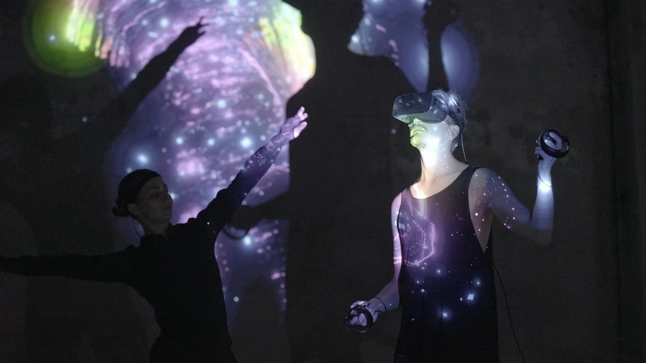 Connecting the suit to a set of virtual music instruments created inhouse and adding some shader magic, we helped create an entirely new type of audiovisual performance. The premise was simple yet powerful - dancer Sara Mörk would play music through her movements, and her black-clad body would throw shadows of sparkling light.